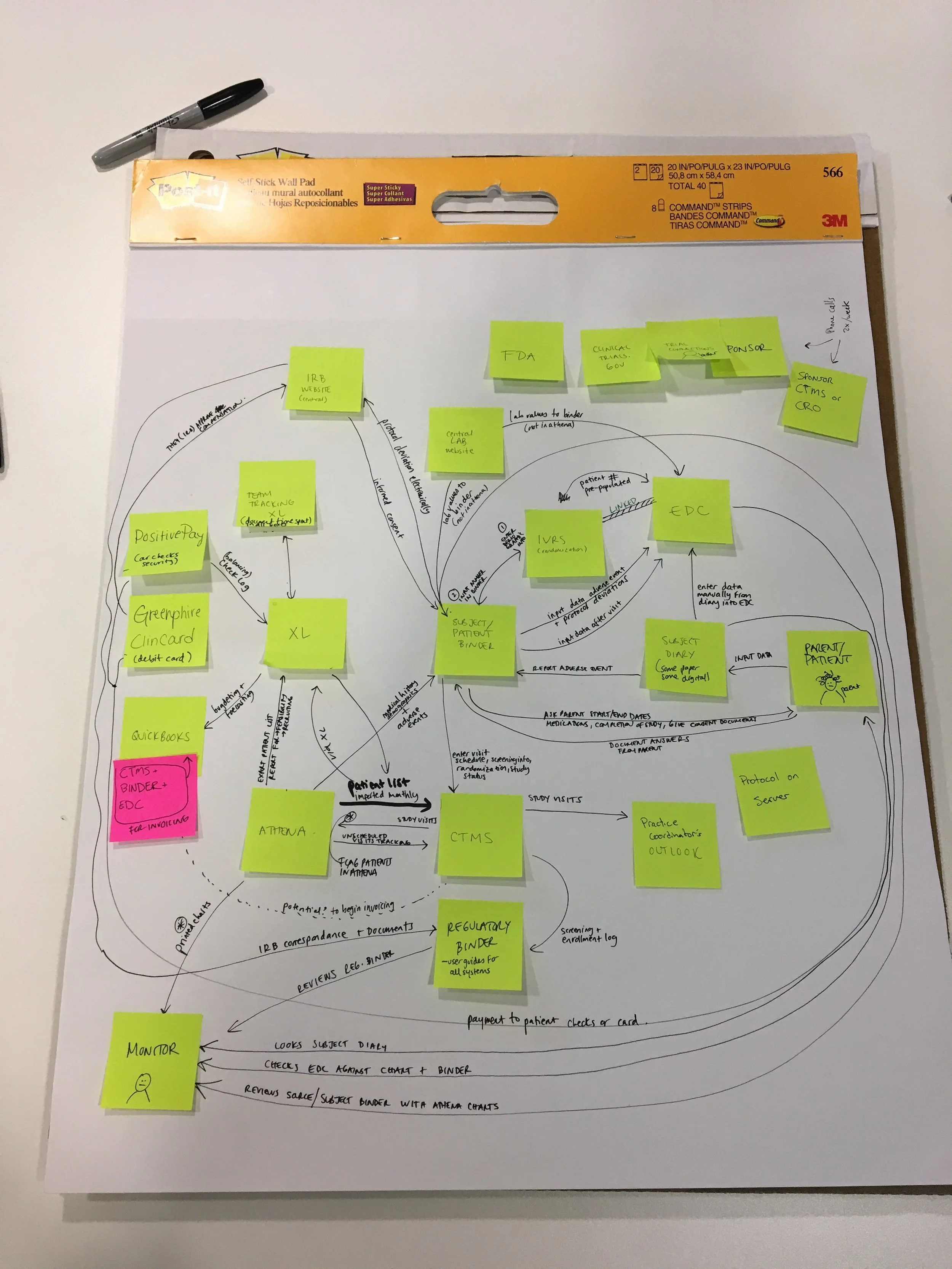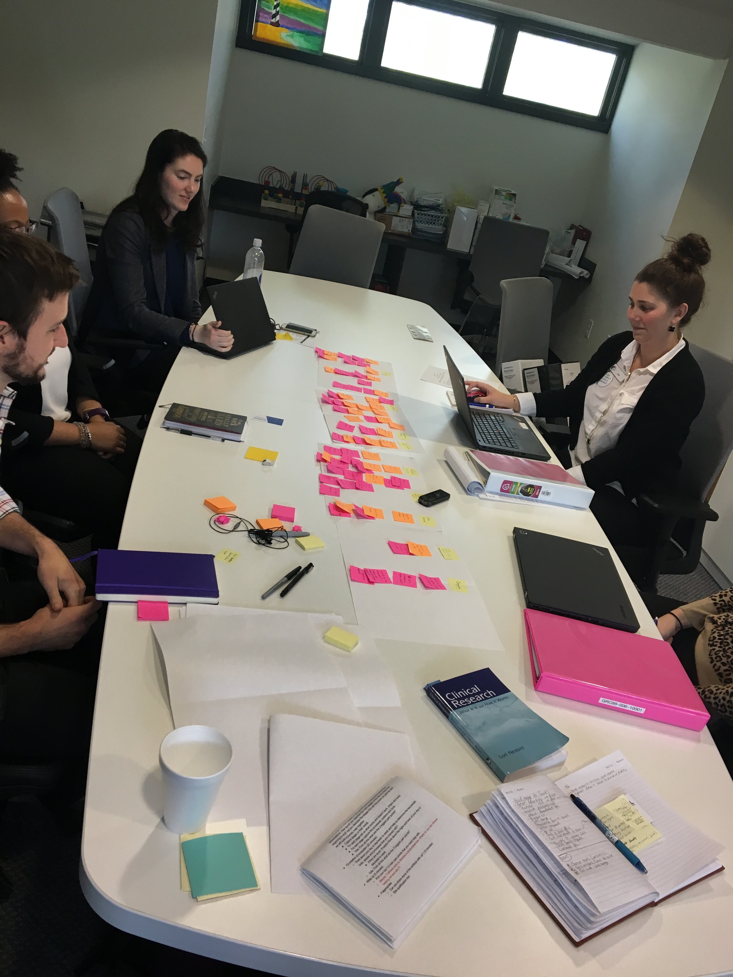 Later on in the project, we went on site with a client who was running pediatric clinical trials at their practice. We interviewed a number of people at the office and ran several collaborative design exercises to map out their process, understand pain points, and explore additional service opportunities.